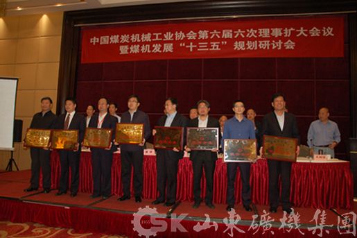 会上,张勇理事长做了理事会工作报告,总结了2015年协会主要工作及“十二五”煤机装备制造业取得的成就,部署了2016年协会重点工作,审议了协会2015年度会费收支情况报告,解读了《国务院关于煤炭行业化解过剩产能实现脱困发展的意见》,表彰了2015年度全国煤炭机械工业优秀企业和优秀企业家,对煤机发展‘十三五’规划进行了研讨。国家安标国家矿用产品安全标志中心副主任杨大明作了煤机行业专题报告。公司副董事长赵华涛针对企业转型发展作了典型发言。公司及副董事长赵华涛在先进评选中分别荣获“全国煤机工业优秀企业”和“全国煤机工业优秀企业家”称号。